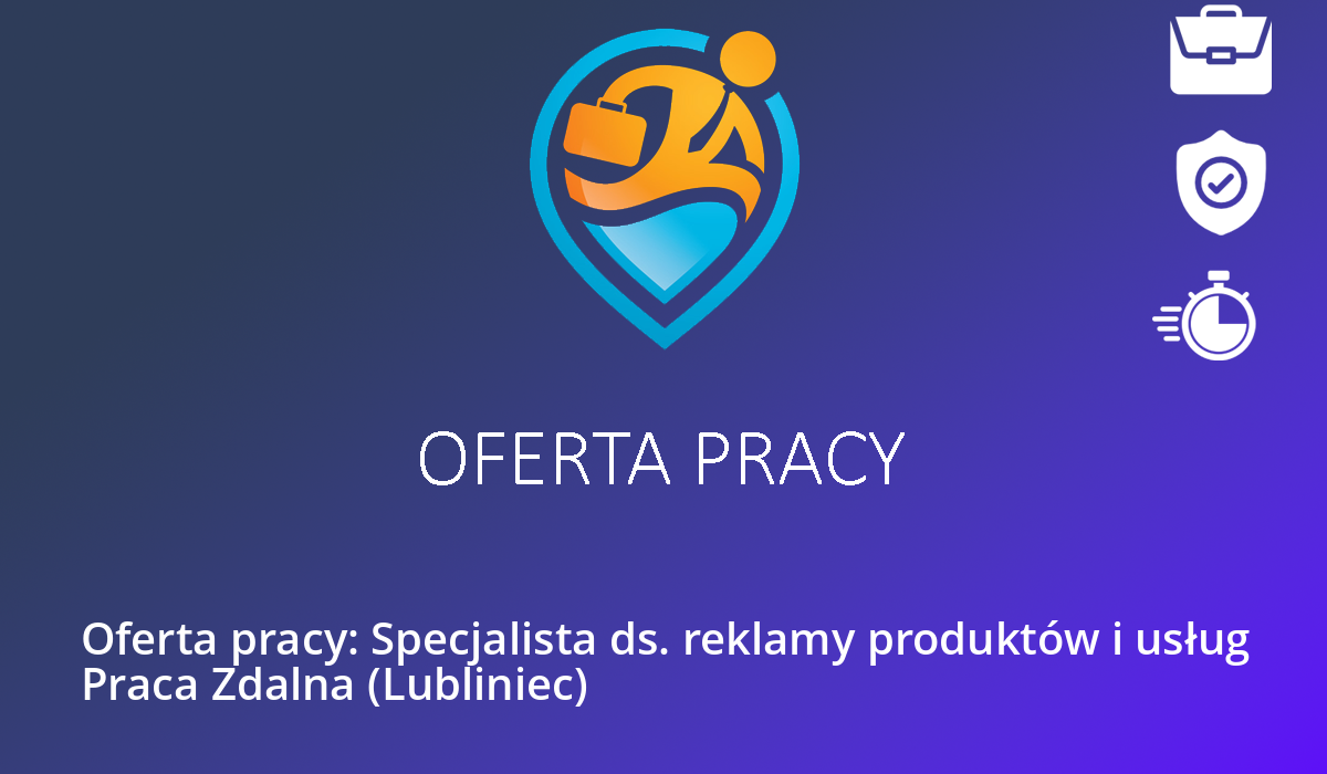 Źródłowe ogłoszenie o pracę: https://jobtime.pl/praca/125704/Specjalista-ds-reklamy-produktow-i-uslug-Praca-Zdalna.html