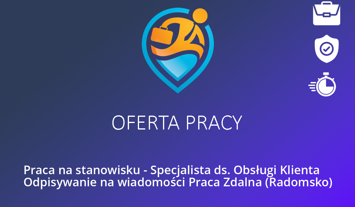 Formularz aplikacyjny: https://jobtime.pl/praca/128043/Specjalista-ds-Obslugi-Klienta-Odpisywanie-na-wiadomosci-Praca-Zdalna.html