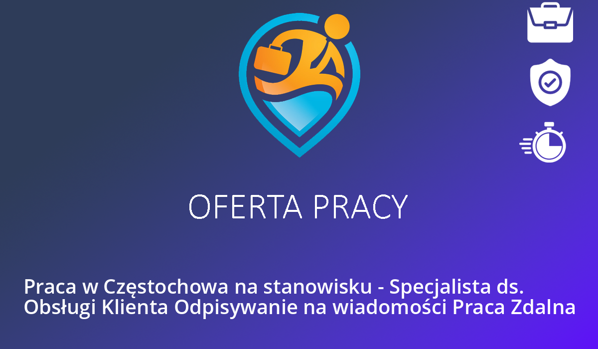 Praca w Częstochowa na stanowisku – Specjalista ds. Obsługi Klienta Odpisywanie na wiadomości Praca Zdalna